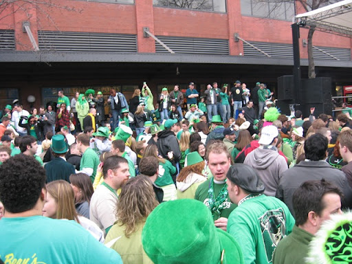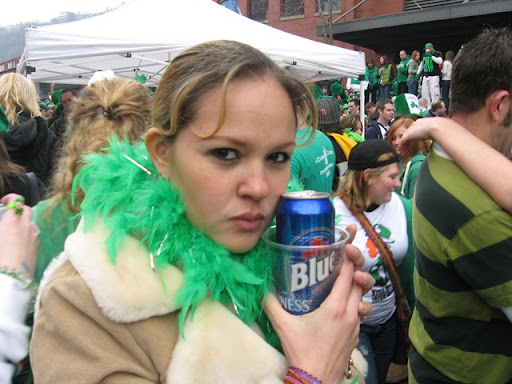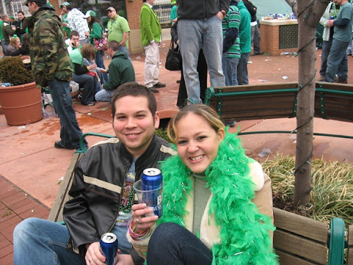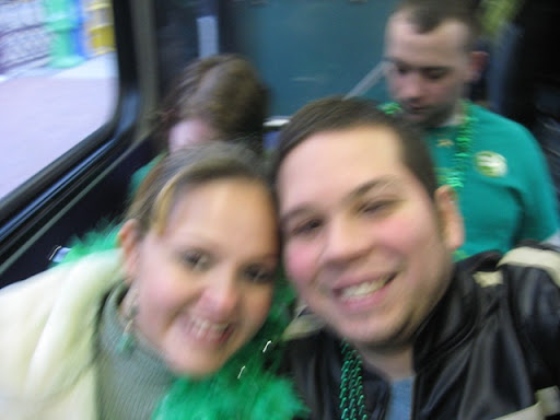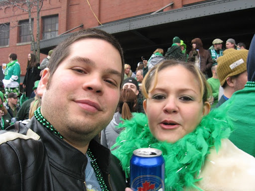 Pittsburgh estaba super prendida... Hemos llegado a la conclusion que el dia de San Patricio es el dia mas movido de esta ciudad... son muy pocas veces las ocasiones en que todos los pittsburghianos salen a formar el desorden en sus calles! En esta foto estabamos haciendo la fila para ir al bano y nos topamos con unas viejas super chistosas y borrachas que nos preguntaron si eramos hermanos...! jajaja seran los hermanos Egea Guihur! No podian creer q eramos esposos!! Al final las viejas nos regalaron $1 dolar por la mamadera de gallo!